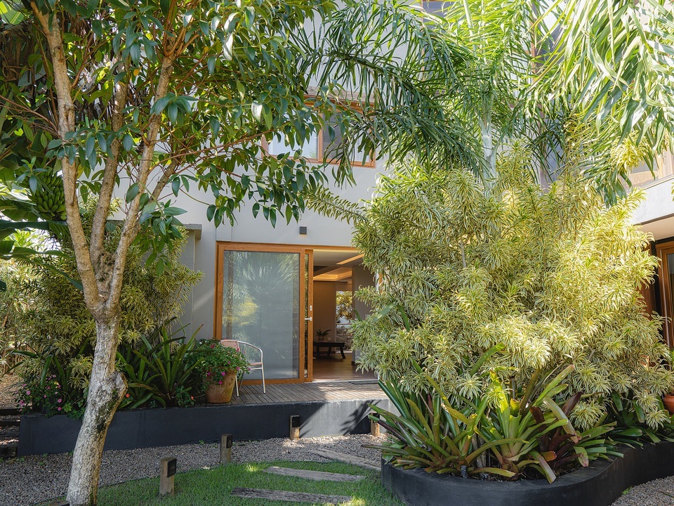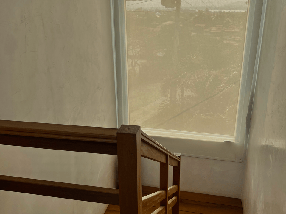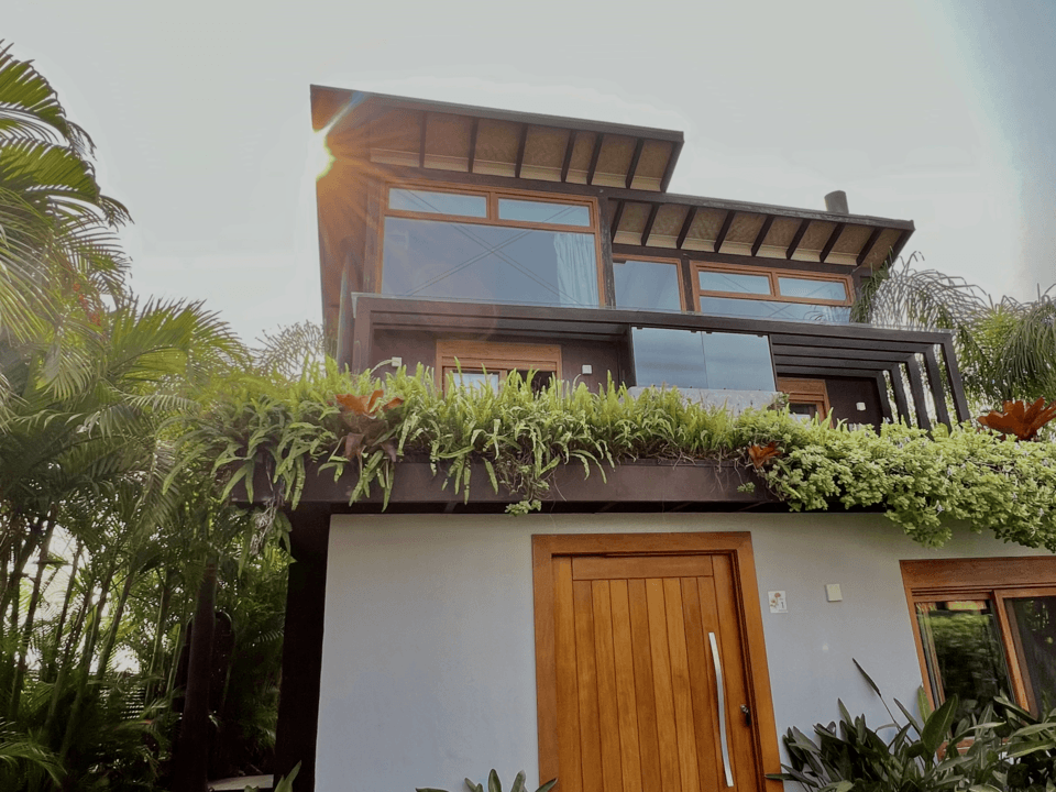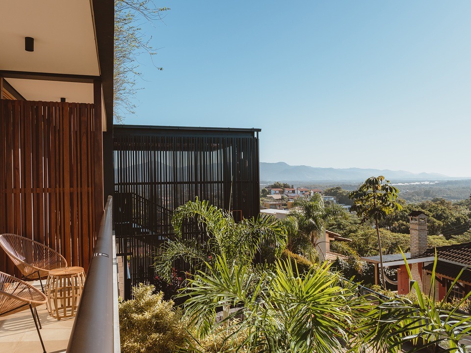 Subindo ao segundo andar, você encontrará dois quartos espaçosos, ambos com sacadas verdes que proporcionam uma vista relaxante e contato direto com a natureza. Os quartos são projetados para garantir o conforto e o descanso, proporcionando um ambiente acolhedor para todos os hóspedes.