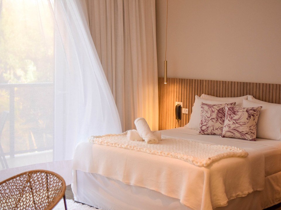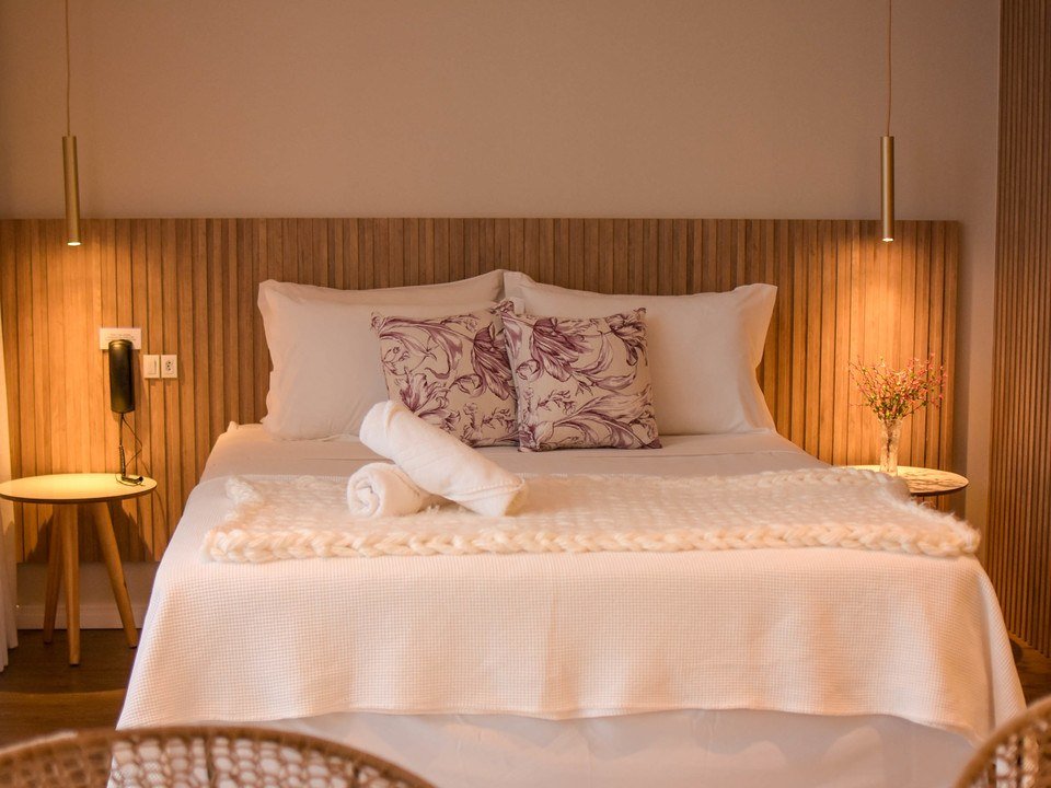 Viva momentos inesquecíveis em nossa Suíte Master, onde cada detalhe é pensado para proporcionar uma experiência de conforto e serenidade em meio à natureza.