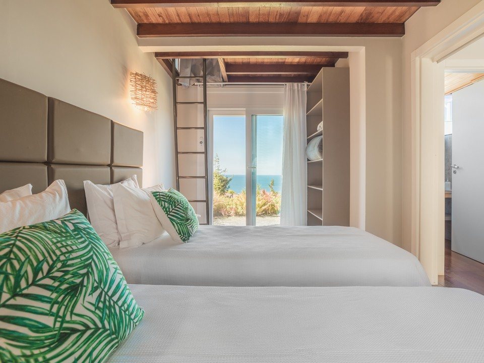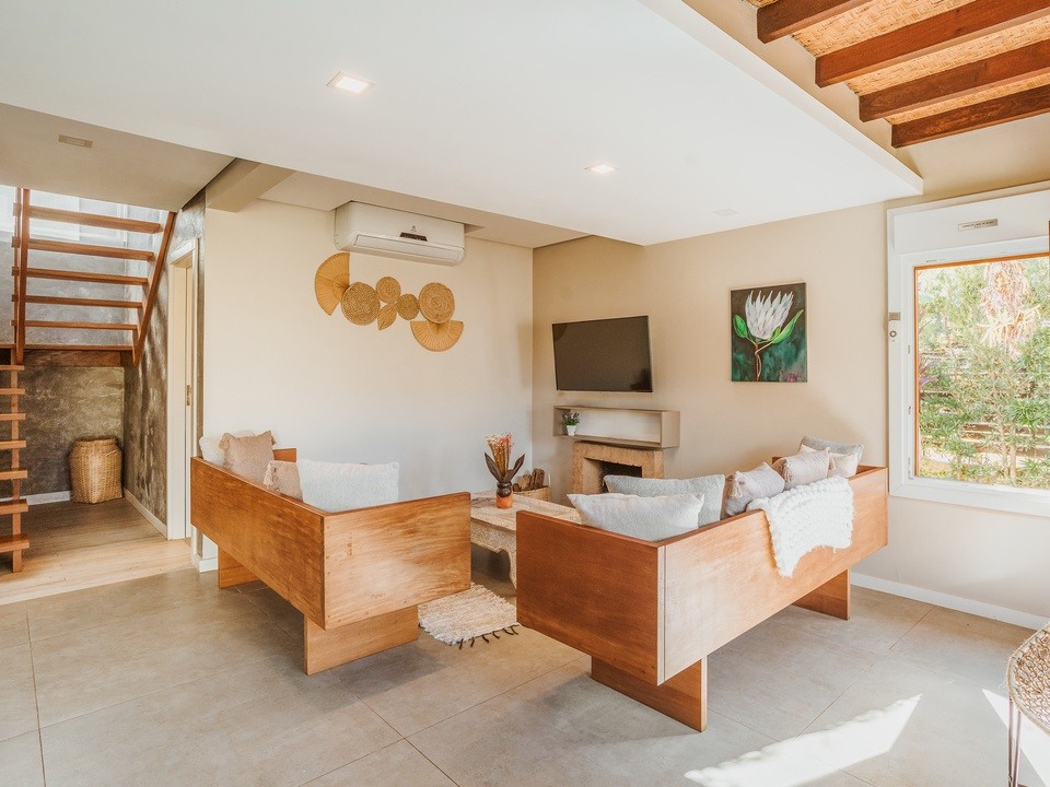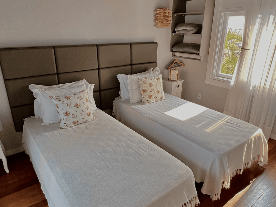 Subindo ao segundo andar, a casa oferece duas suítes elegantes, projetadas para garantir conforto e privacidade aos hóspedes. As suítes contam com detalhes de alta qualidade e sacadas com vistas relaxantes, permitindo um contato direto com a natureza. Além disso, um terceiro cômodo versátil está disponível, acomodando confortavelmente até 3 pessoas, ideal para famílias grandes ou grupos de amigos.
